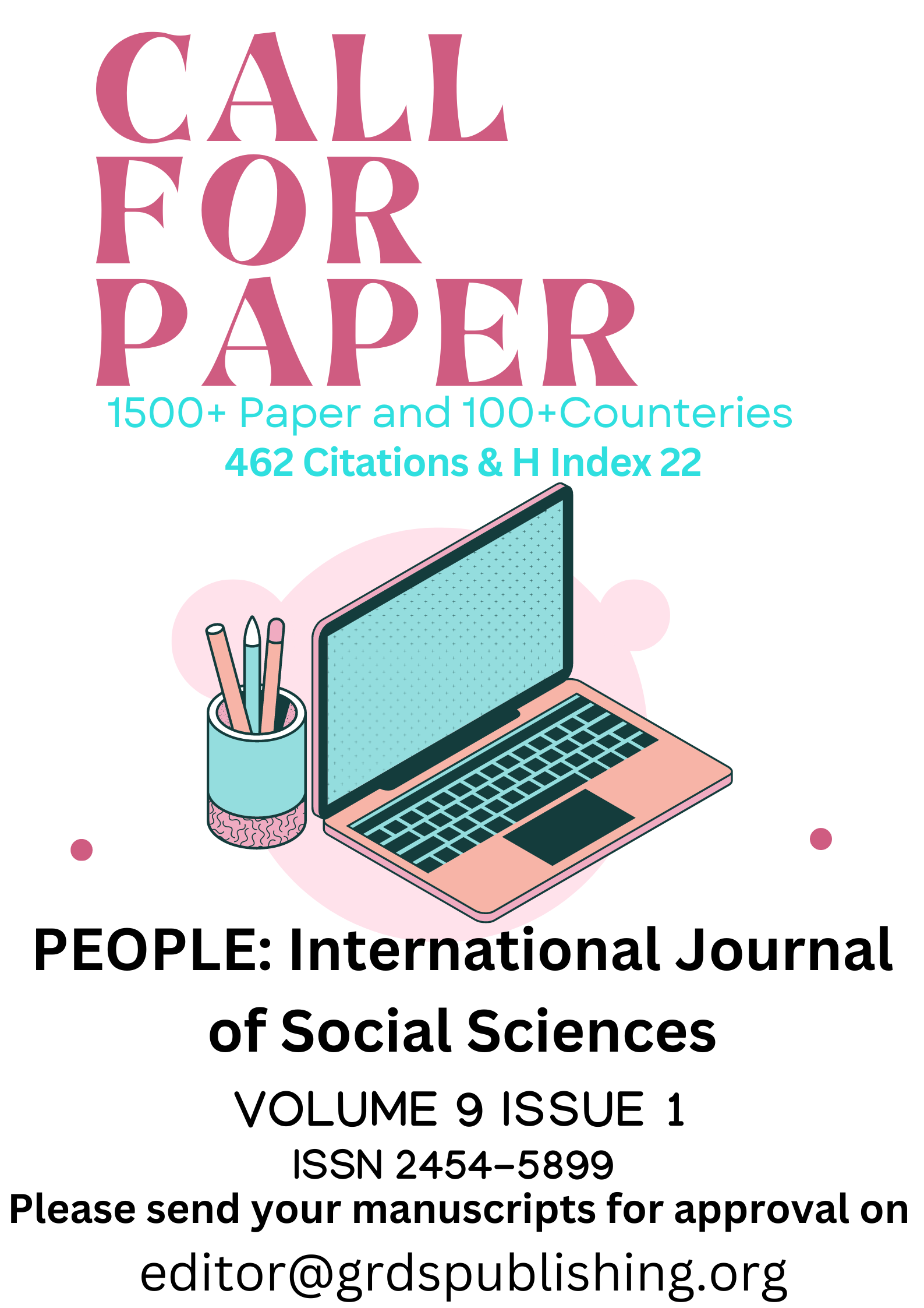 PEOPLE: International Journal of Social Sciences, is open access, peer-reviewed, and refereed journal. The main objective of ‘People’ is to provide an intellectual platform for international researchers. ‘People’ aims to promote interdisciplinary studies in humanities and social science and become the leading journal in humanities and social science in the world. This journal is dedicated to the miracle called ‘Society’ that powers all types of civilizations and is fueled by the spirit of survival and co-existence.